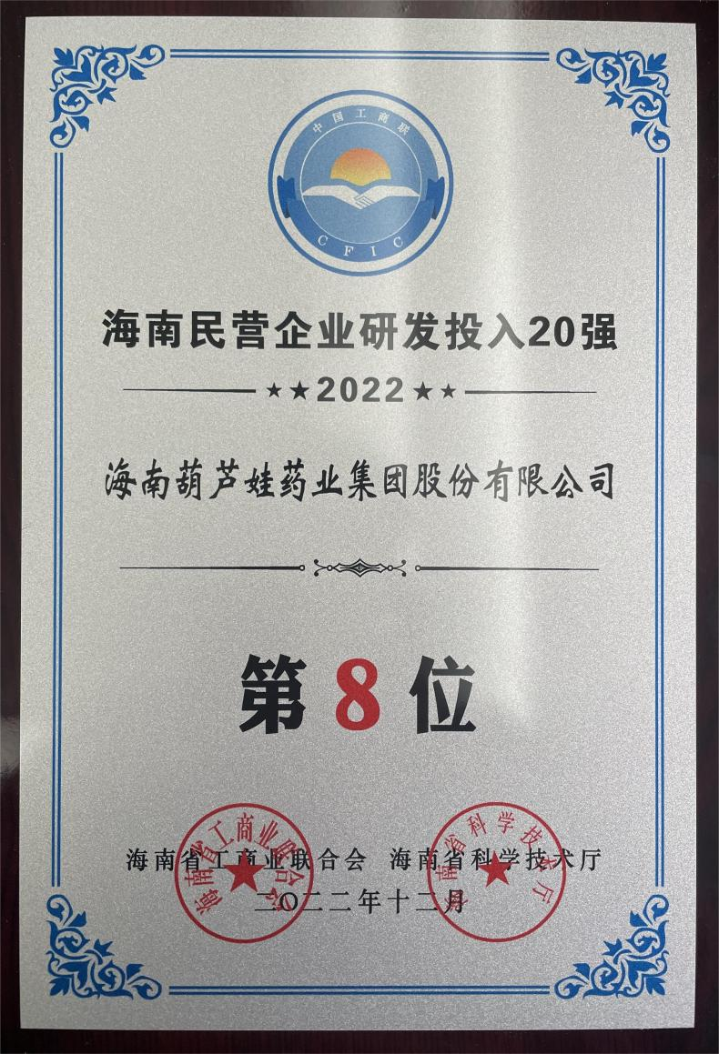 12月23日,2022海南民营企业50强和研发投入20强发布会在海口举行。会上发布了“2022海南民营企业50强”“2022海南民营企业研发投入20强”榜单和分析报告。yd12399云顶集团药业再次荣登两榜,在海南民营企业50强榜单中位列第25位,较去年上升8位,这也是公司连续三年登榜;在海南民营企业研发投入20强中位列第8位,较去年上升7位。
